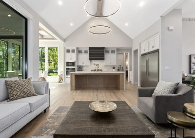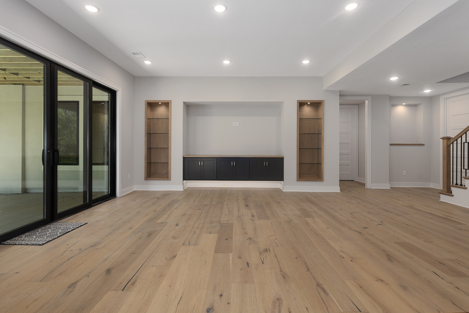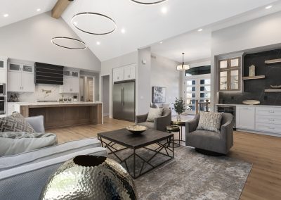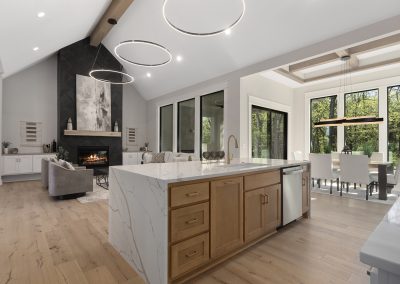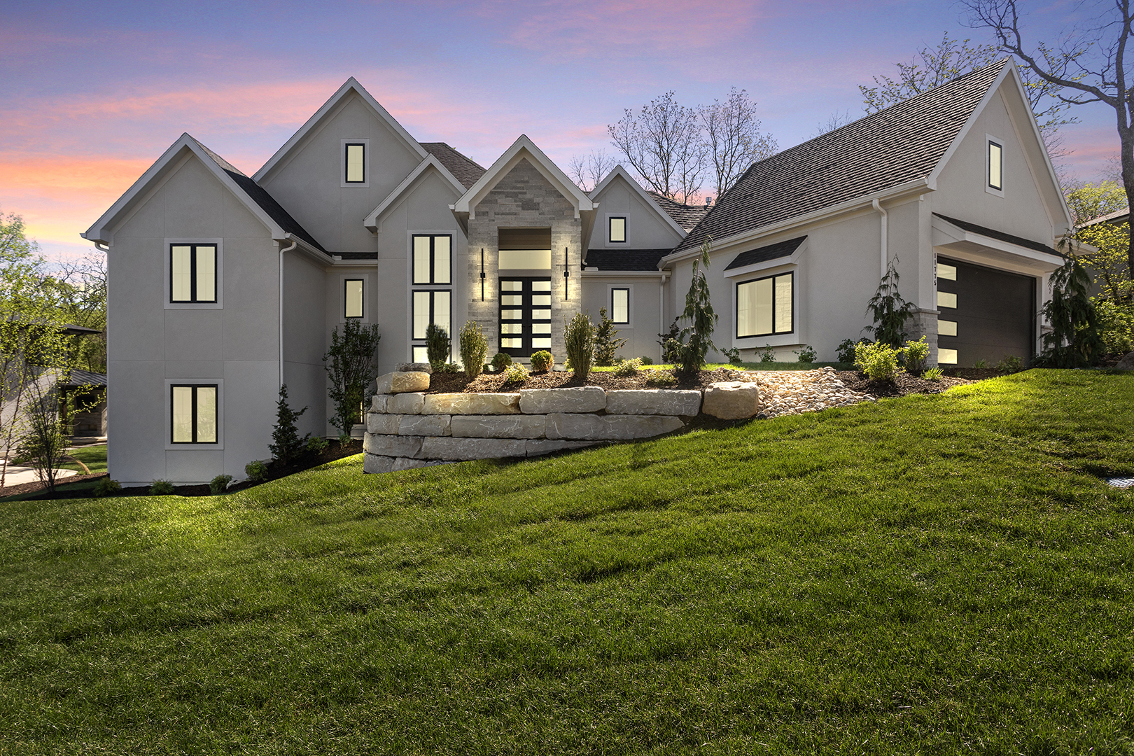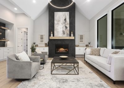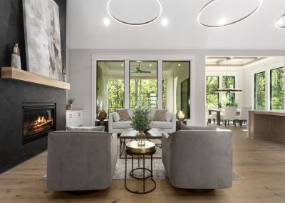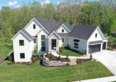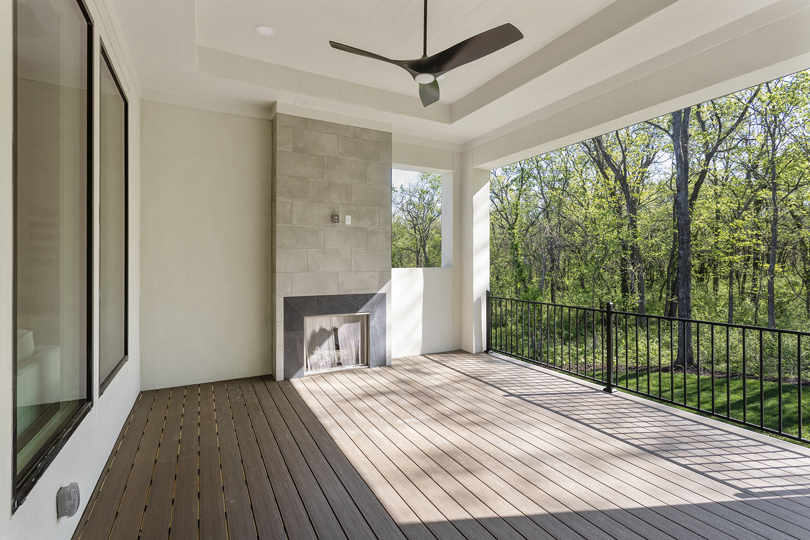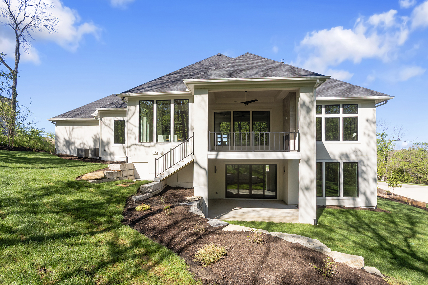 Stunning Reverse 1.5 Story on Heavily Wooded Walk-Out Lot. This exceptional new plan blends open, light-filled living with thoughtful design for both entertaining and privacy. The main level offers two private bedroom suites, each with its own bath. A vaulted great room and dining area feature walls of windows that flood the home with natural light and frame serene wooded views. Oversized 8’ sliding doors extend the living space to a covered lanai with fireplace and ceiling fan, creating the perfect indoor/outdoor retreat. The luxurious primary suite showcases wooded views and a spa-inspired bath with a freestanding tub, zero-entry shower, and floating custom cabinetry. The finished walk-out lower level boasts 10’ ceilings, three additional bedrooms, and a spacious rec room with entertainment center and decorative niches. The full bar is equipped with sink, beverage center, and quartz countertops—ideal for hosting. An oversized flex suite with built-ins and beverage center offers endless possibilities: gym, yoga studio, or media room. Located in sought-after Timberstone Ridge, this home combines luxury finishes, versatile spaces, and breathtaking views—an incredible opportunity for refined living