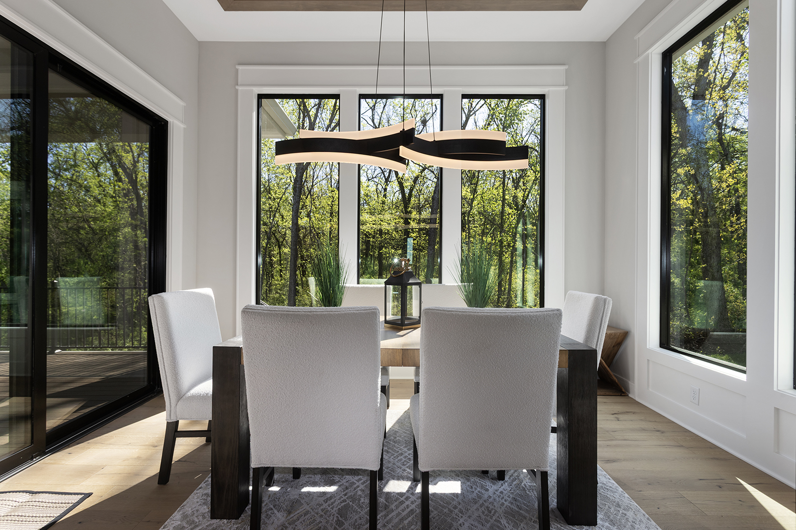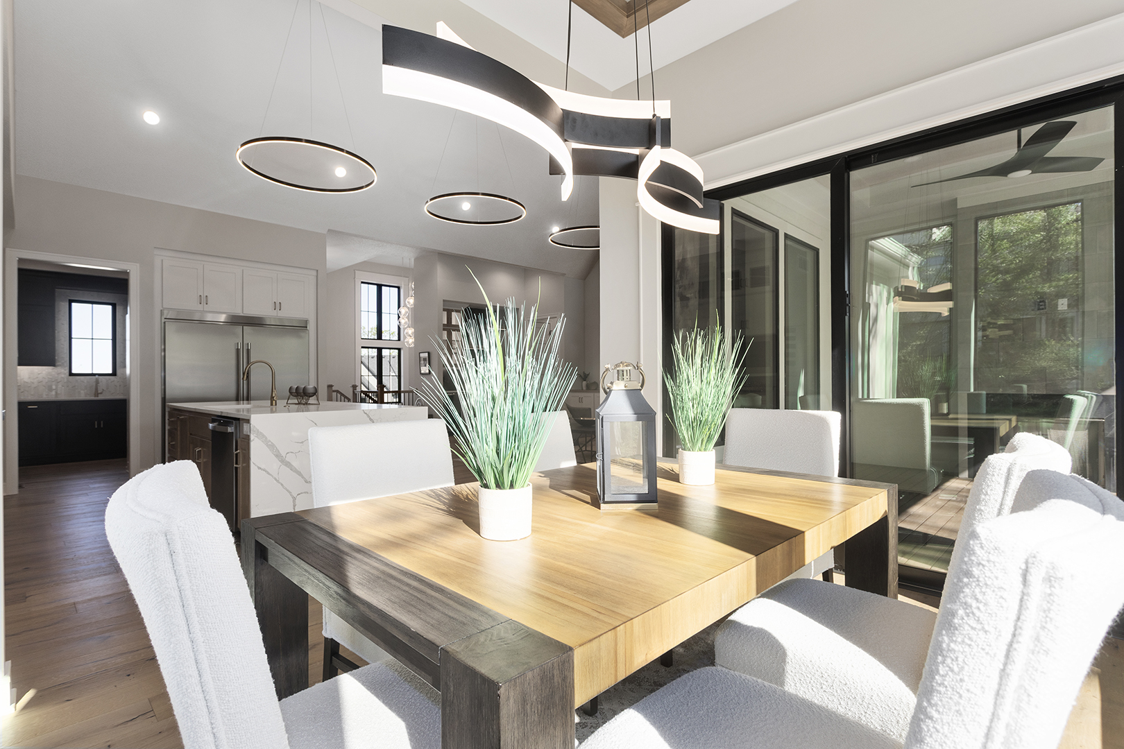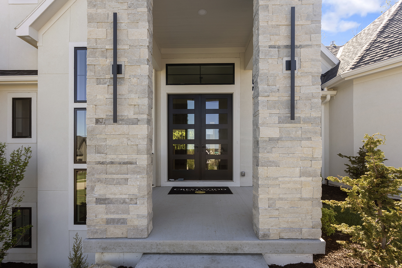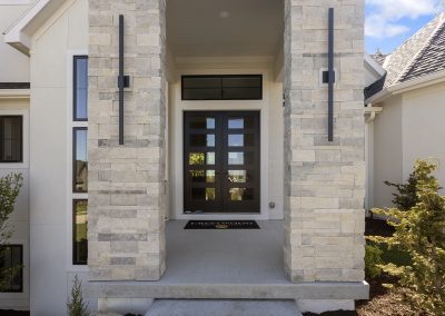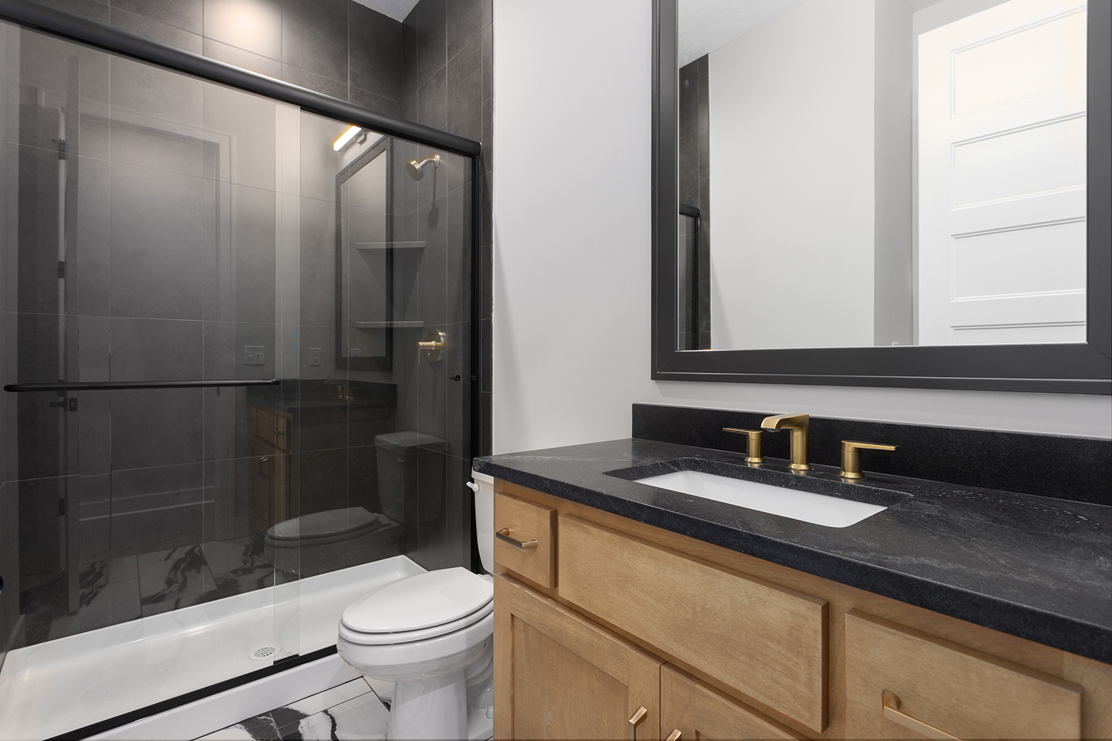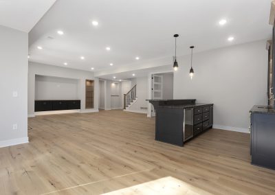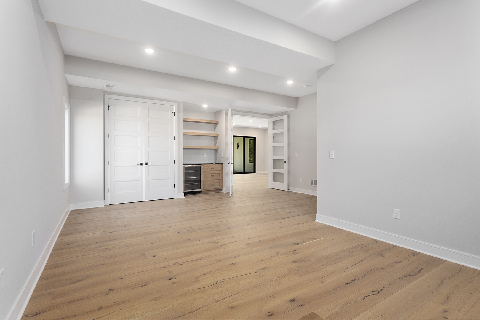 Stunning Reverse 1.5 Story on Heavily Wooded Walk-Out Lot. This exceptional new plan blends open, light-filled living with thoughtful design for both entertaining and privacy. The main level offers two private bedroom suites, each with its own bath. A vaulted great room and dining area feature walls of windows that flood the home with natural light and frame serene wooded views. Oversized 8’ sliding doors extend the living space to a covered lanai with fireplace and ceiling fan, creating the perfect indoor/outdoor retreat. The luxurious primary suite showcases wooded views and a spa-inspired bath with a freestanding tub, zero-entry shower, and floating custom cabinetry. The finished walk-out lower level boasts 10’ ceilings, three additional bedrooms, and a spacious rec room with entertainment center and decorative niches. The full bar is equipped with sink, beverage center, and quartz countertops—ideal for hosting. An oversized flex suite with built-ins and beverage center offers endless possibilities: gym, yoga studio, or media room. Located in sought-after Timberstone Ridge, this home combines luxury finishes, versatile spaces, and breathtaking views—an incredible opportunity for refined living
